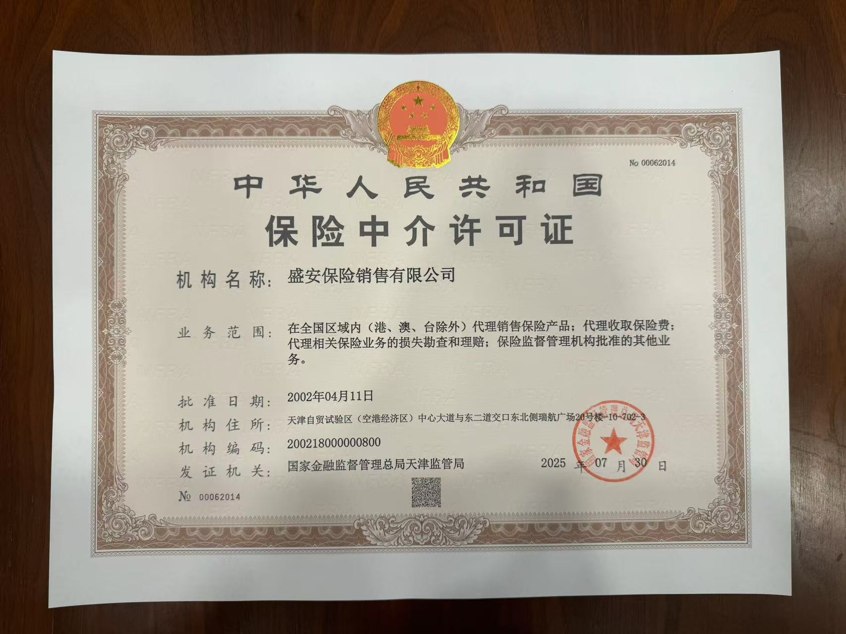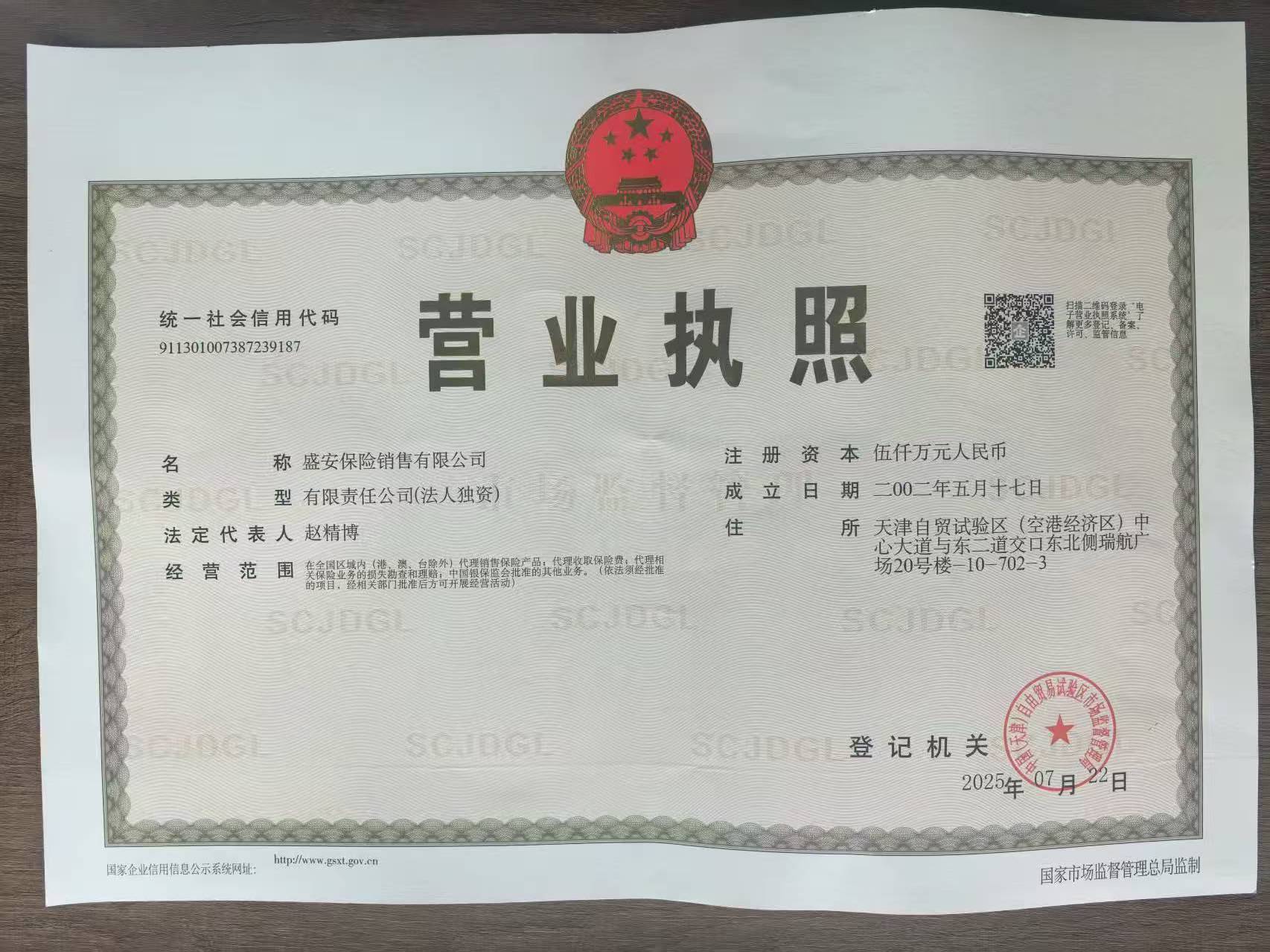 盛安保险销售有限公司(以下简称“盛安保险”)于2002年经中国银行保险监督管理委员会批准成立,注册资本金5000万元,是一家全国性的保险代理公司,总部坐落于天津市。